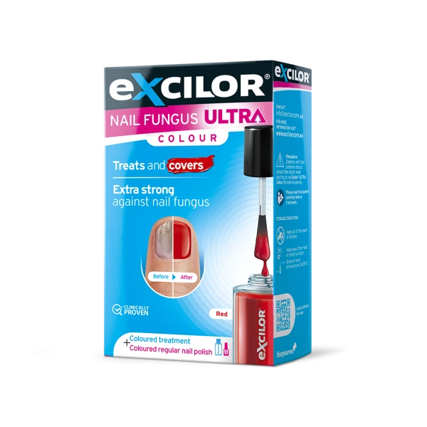 Excilor Forte Color Red is a strong formulated colored solution for treating nail fungus infections that is clinically proven to deliver an immediate visual improvements while keeping nails beautiful.